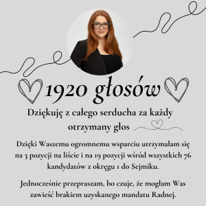 I to już koniec…piękne 1920 głosów od mieszkańców Łodzi, od Was Kochani za co ogromnie dziękuję Mandatu Radnej nie uzyskałam, za co przepraszam, bo czuję,